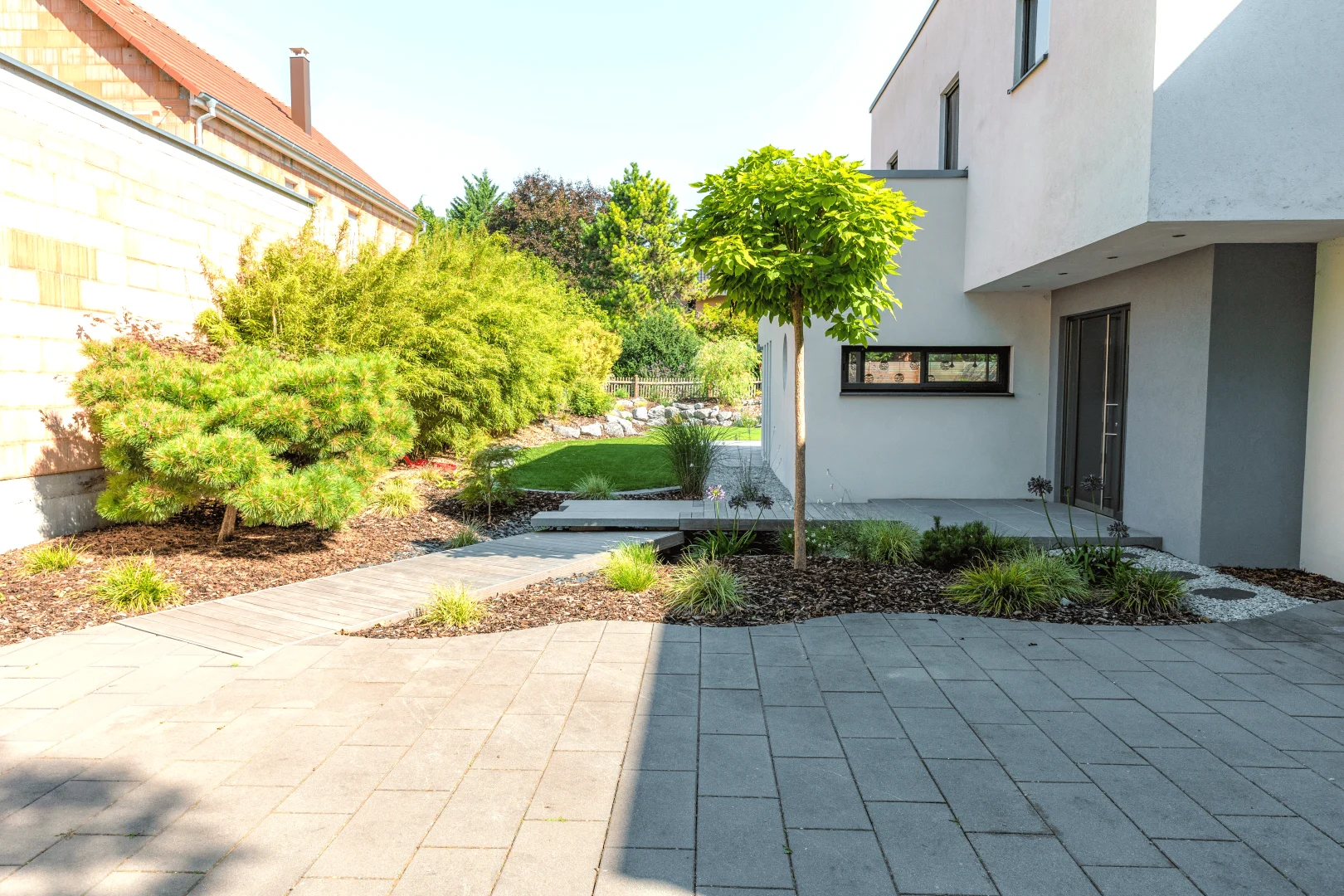 Pavage, dallage, en pierre naturelle, bois, gravier stabilisé, béton ou acier corten : chaque matériau est sélectionné pour sa durabilité, sa sécurité et son intégration dans votre environnement.