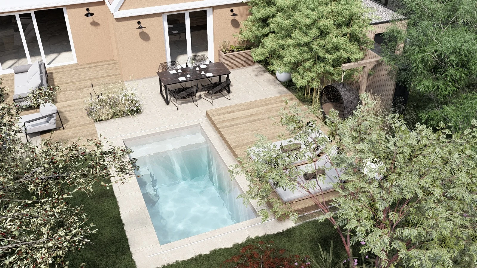 🌿 L’idée : une piscine qui disparaît sous la terrasse