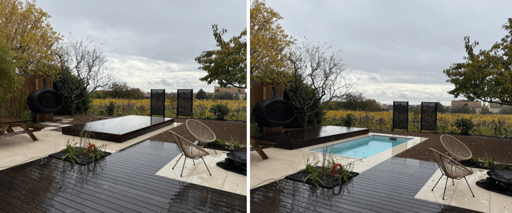 “C’est un vrai plaisir de passer de la terrasse à la piscine en quelques secondes. On a l’impression que notre jardin s’adapte à chaque moment de la journée.”